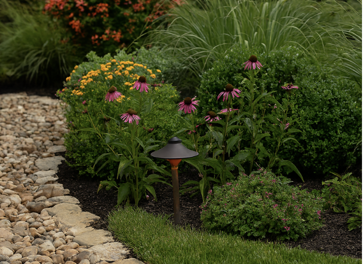 Curb appeal enhancement featuring new planting beds, seasonal color, landscape lighting, and improved drainage solutions.